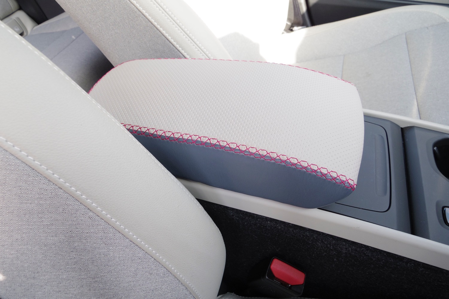 アームレストもグレー一色でXC40の瀟洒なインテリアに対してシンプルすぎる印象なので、ステアリングホイールと同じテイストでバレルンガ by TEZZO 本革巻きアームレスト for ボルボXC40もリリースした。運転席と助手席の間にある、純正のままだと無粋なこの部分をグレー/シルバーブルーの本革にすることで、それまで意識していなかったパーツが圧倒的な存在感を放ち始める。