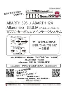 ABARTH 595 / ABARTH 124 Alfaromeo GIULIA(ベース/スーパー/ヴェローチェ)TEZZOカーボンエアインテークシステム【PDFを開く】