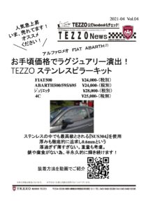 FIAT 500の丸いPOPなイメージ TEZZO lxy スポーツマフラー for FIAT500 TwinAir デュアロジック /片側1本出し【新規制車検対応】