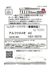 lxyスポーツマフラー(車検対応)by TEZZO アルファロメオ 4C【PDFを開く】