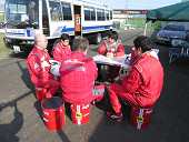 今年は筑波ショートコースにて2回ドライビングレッスンを行いましたが、今回は筑波本コースにての開催。参加メンバーも4名とあって太田選手とレースメカによるレクチャーがたっぷり受けられ、走行時間も20分×3本、時間外に太田選手による同乗走行と盛りだくさんな内容で行われました。