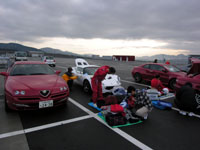 しかしポルシェときたらこちらがブレ−キング中にまだ加速中で抜いて行く。いったい何キロ出てるんでしょうかね?ブレ−キングもタイヤスモ−クモクモクです。今回は速い車が多くミラ−を見る機会が多かった。腕も車の性能も圧倒的に違うのに抜かれると悔しいのは、やはり男だからか?レ−サ−ズクラブの初心は自分自身のスキルアップ、しかし今自分がうまくなっているのかどうか客観的に見るには走行会だけでは無く、アルファチャレンジに参戦するという物差しが必要だと思った。